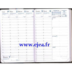 10x15cm de Août à Août. Calendriers, vacances scolaires, informations pratiques, atlas couleur. Planning vertical 1 semaine sur 2 pages, pages blanches, coins perforés, impression certifiée selon la marque "Imprim'Vert", papier issu de forêts gérées durablement, reliure cousue haut de gamme.