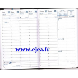 10x15cm de Décembre 2024 à Décembre 2025 Calendriers, vacances scolaires, informations pratiques, atlas couleur. Planning vertical 1 semaine sur 2 pages Couverture noire, reliure cousue haut de gamme. Pages blanches lisses pour une écriture fluide, papier issu de forêts gérées durablement, coins perforés.