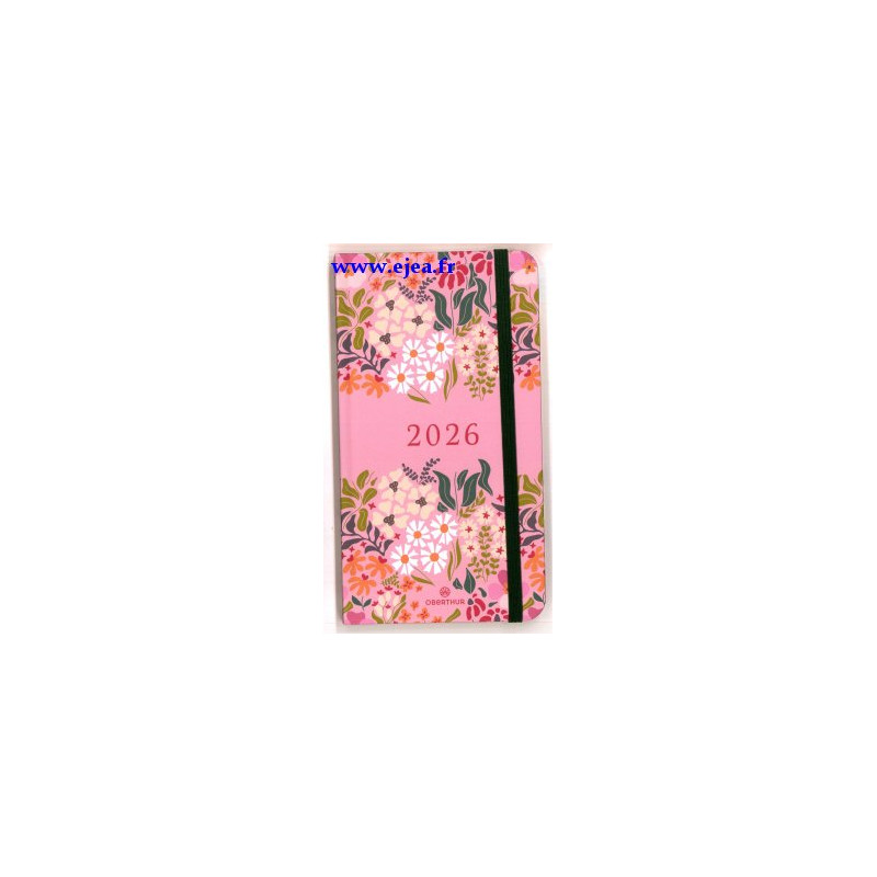 de Janvier à Décembre 2026 Calendriers, vacances scolaires, informations pratiques, atlas en couleurs. Planning vertical 1 semaine sur 2 pages avec cadres et espaces de notes, impressions en couleurs, pages blanches, coins perforés et signet marque-page, couverture cartonnée rigide, fermée par un élastique. Format 9,5x17cm.