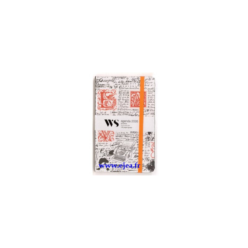 Semainier de poche de janvier à décembre 2026, une semaine par double-page planning hebdomadaire vertical présenté en format paysage (à l'italienne), 136 pages blanches lignées, calendrier, répertoire, pages de notes.
