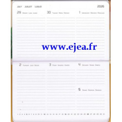 Semainier de poche de janvier à décembre 2026, une semaine par double-page planning hebdomadaire vertical présenté en format paysage (à l'italienne), 136 pages blanches lignées, calendrier, répertoire, pages de notes.