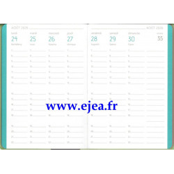 Calendriers, vacances scolaires, informations pratiques, répertoire, pages de notes, carnet amovible assorti à la couverture. Planning vertical 1 semaine sur 2 pages Couverture toilée amovible. Reliure cousue, ouverture à plat facile. Pages ivoires 100g haute qualité, avec une couleur différente par trimestre sur la tranche, fabriqué en France.