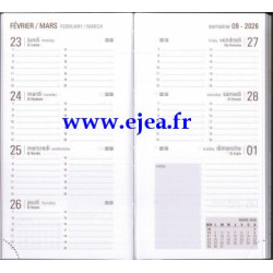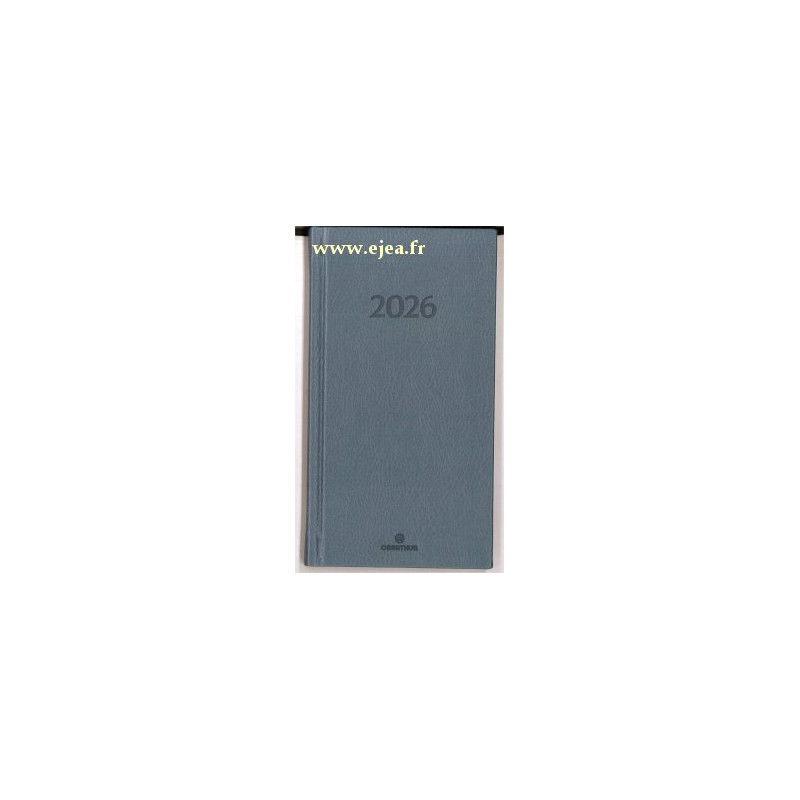 17,5x10cm de Janvier à Décembre 2026 Calendriers, vacances scolaires, informations pratiques, atlas en couleurs, répertoire. Planning horizontal 1 semaine sur 2 pages. Couverture cartonnée rigide et texturée. Pages blanches, coins perforés, signet marque-page.