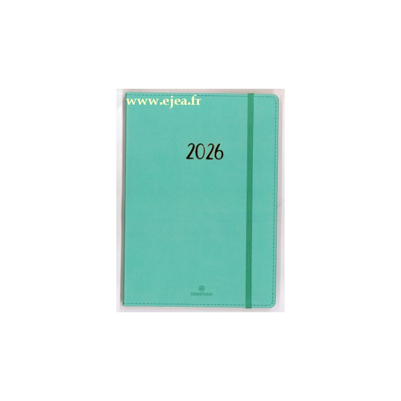 Pages couleur jaune (très très clair !) numérotées, double cordon marque-page, pochette en fin d'agenda, couverture souple imitation cuir surpiquée et imprimée doré à chaud fermée par un élastique. Format 15,5x21,5x1cm, fabriqué en France par Oberthur.