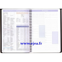 de Janvier à Décembre 2026 Calendriers, vacances scolaires, informations pratiques, atlas en couleurs. Planning vertical 1 semaine sur 2 pages avec cadres et espaces de notes, grilles de planning de couleurs différentes, pages blanches, coins perforés, couverture cartonnée, reliure spirales en métal. Format 16,5x24cm.