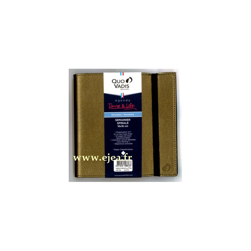 Agenda Time & Life 2026 Medium Quo Vadis bronze 16x16cm de Décembre 2025 à Décembre 2026 l'agenda des temps de vie pour une organisation facile vie professionnelle et familiale.