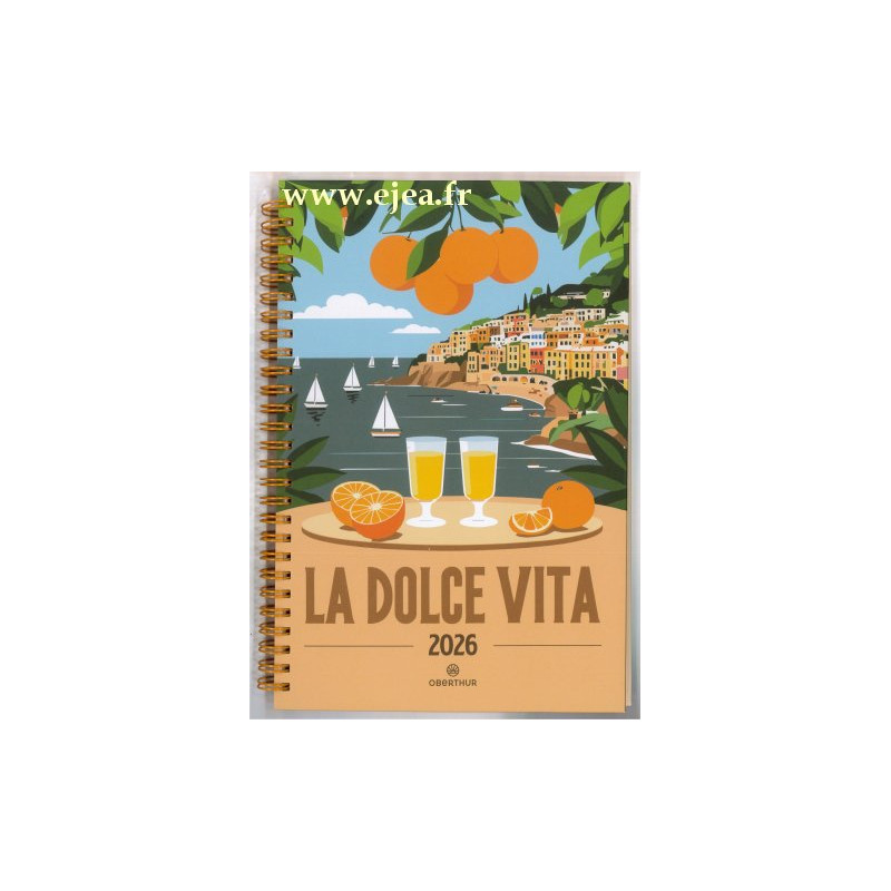 de Janvier à Décembre 2026 Calendriers, vacances scolaires, informations pratiques, atlas en couleurs. Planning vertical 1 semaine sur 2 pages, pages blanches, coins perforés, couverture cartonnée rigide, reliure avec spirales. Format 16x24cm.