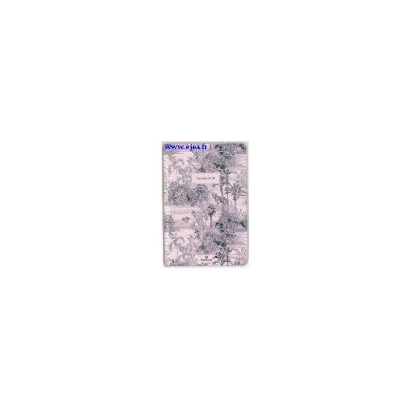 de Janvier à Décembre 2026 Calendriers, vacances scolaires, informations pratiques, répertoire, grand atlas en couleurs. Planning vertical 1 semaine sur 2 pages avec cadres et espaces de notes, pages blanches, coins perforés, couverture cartonnée rigide avec effet texturé, motifs imprimés sur les 2 couvertures. Format 16x23.5cm.