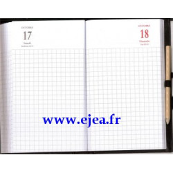 Format poche 9x15x1,8cm, 1 jour par page de janvier à décembre 2026, une page complète pour chaque journée samedi et dimanche inclus avec quadrillage petits carreaux. Jours fériés et dimanches imprimés en rouge pour une bonne visibilité.
