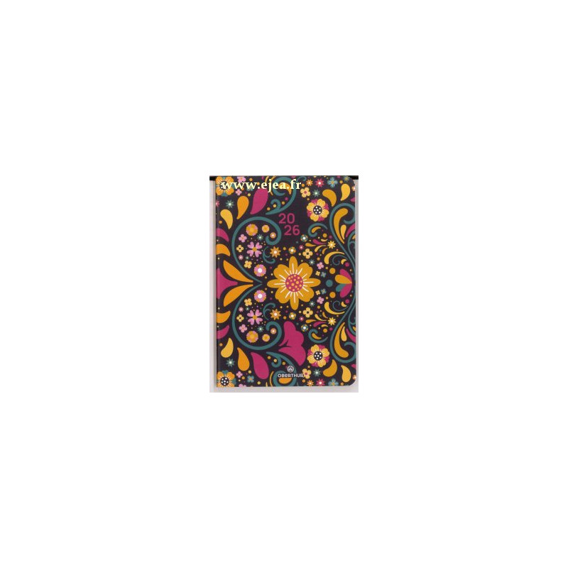 Calendriers, vacances scolaires, informations pratiques, répertoire, atlas. Planning vertical 1 semaine sur 2 pages, pages blanches, coins perforés, couverture cartonnée souple. Format 10x15cm. Un design aux accents mexicains qui donne du baume au coeur, motifs imprimés sur les 2 couvertures.