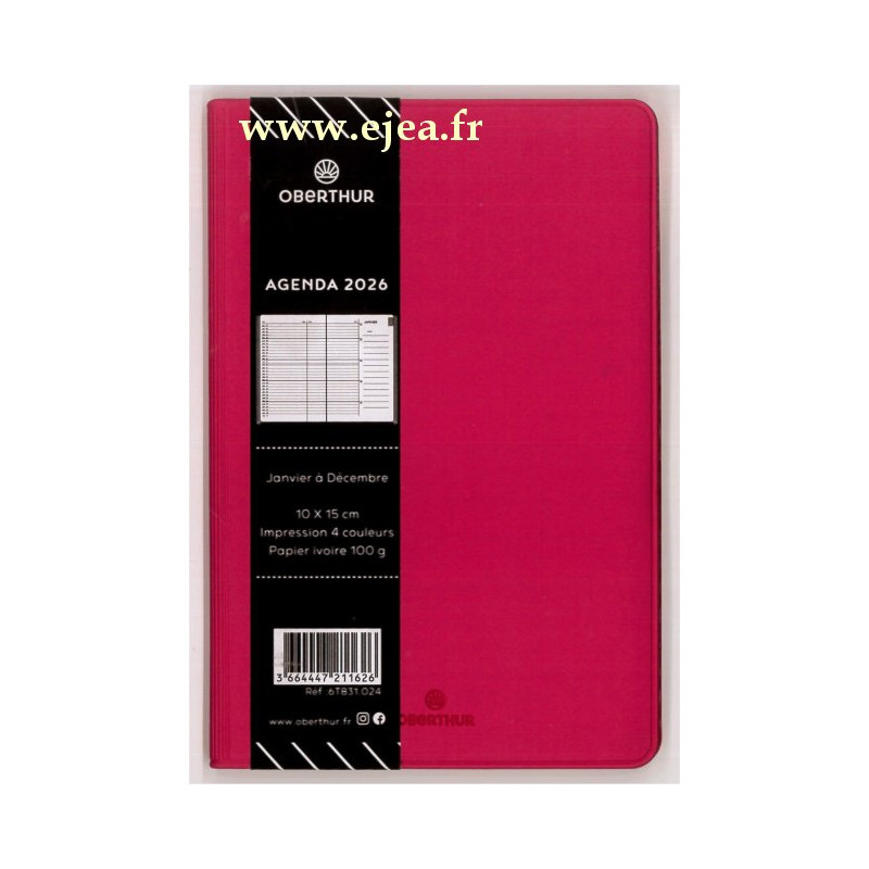 Agenda mensuel Color Touch 2026 rose Oberthur 10,5...