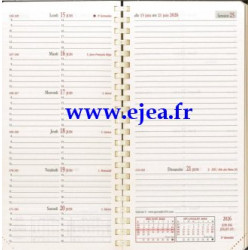 8,8x17cm de Décembre 2025 à Décembre 2026 Calendriers, vacances scolaires, atlas couleur, répertoire, pages de notes. Planning horizontal semaine sur page de gauche et page de notes à droite.