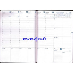 De décembre 2025 à Décembre 2026 Planning vertical une semaine sur 2 pages, infos pratiques, atlas couleur, pages blanches, répertoire amovible, Format : 21x29,7cm. Couverture souple en simili cuir surpiquée.