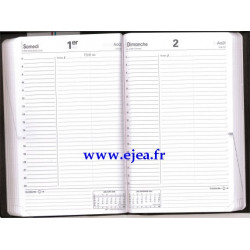 13x21cm, janvier à décembre, 1 jour par page avec espace de notes, infos pratiques, pages blanches lignées et répertoire. Couverture noire, reliure cousue haut de gamme. Pages blanches lisses pour une écriture fluide, papier issu de forêts gérées durablement, coins perforés, fabriqué en France.