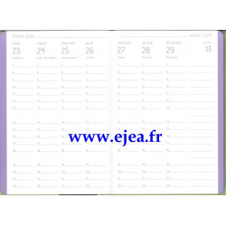 10,5x15,5cm de Décembre 2025 à Décembre 2026 Calendriers, vacances scolaires, informations pratiques, répertoire, pages de notes, carnet amovible assorti à la couverture. Planning vertical 1 semaine sur 2 pages Couverture toilée amovible. Reliure cousue, ouverture à plat facile. Pages ivoires 100g haute qualité, avec une couleur différente par trimestre sur la tranche, fabriqué en France.