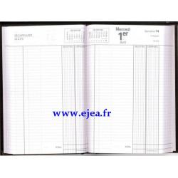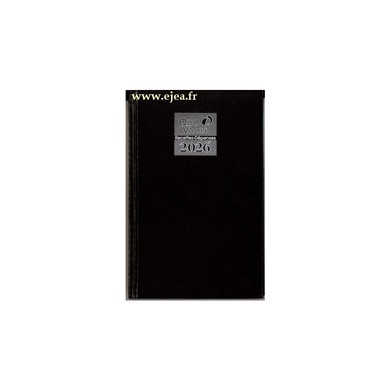 Format : 14x21,5x2cm. 1 jour par page avec colonnes recettes et dépenses et case total. 12 mois de janvier à décembre 2026, calendriers, récapitulatifs mensuels et annuel, répertoire. Couverture cartonnée rigide noire, reliure cousue haut de gamme.