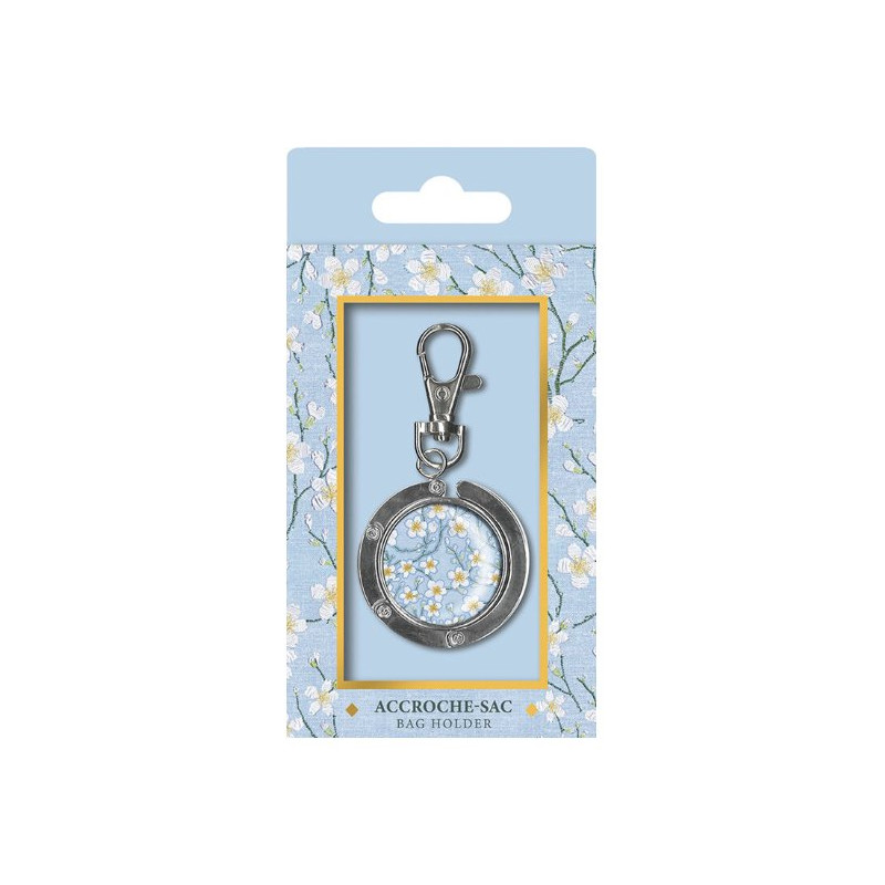 A la fois un très joli porte-clé en métal avec décor aux détails dorés et surtout un accroche-sac astucieux qui se clipse sur presque toutes les tables afin de ne pas laisser trainer votre sac à terre.