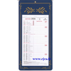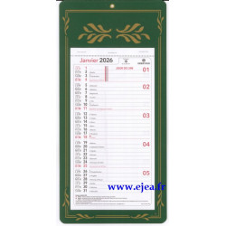 Calendrier à effeuiller mois par mois, de janvier à décembre. Avec jours féries, vacances scolaires, saint du jour; lunes, zodiaque, numéro des semaines et des jours (compte et décompte).