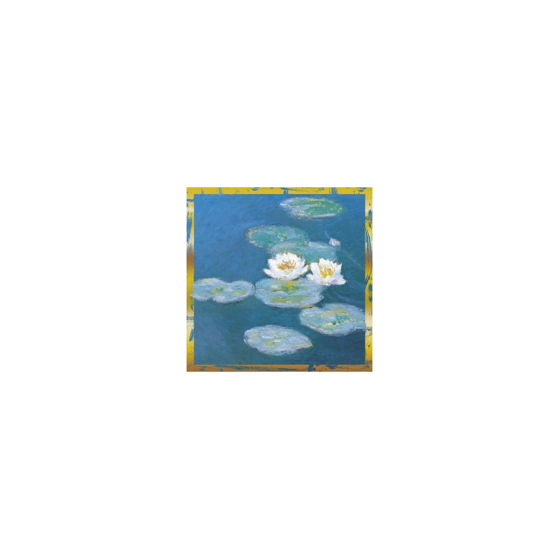 Reproduction de l'oeuvre de Claude Monet : Nymphéas, effet du soir, 1897-98. Format plié carré : 13x13cm, enveloppe couleur ivoire comprise. Contours et détails métallisés or. Cette carte a été créée, imprimée et façonnée en France par les Editions du Désastre sur leurs presses de Mâcon en Bourgogne dans le respect des normes environnementales.