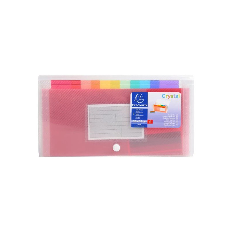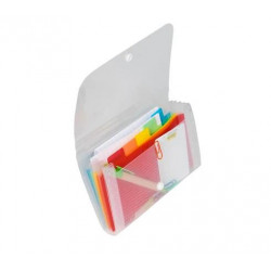 Trieur porte-feuille 18x11cm, trieur avec ouverture en éventail, 6 compartiments avec des onglets et différentes couleurs acidulées. Contenance jusqu'à 100 feuillets 80g. Pratique il peut s'emporter facilement pour y mettre chèques, billets, cartes, photos... Matière plastique recyclée, fermeture pratique par bouton pression, facile à ouvrir et refermer. Planche d'index adhésifs inclus pour personnaliser vos onglets.