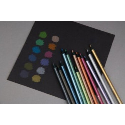 Couleurs métallisées, mines résistantes, faciles à tenir grâce à leurs formes triangulaires. S'utilise sur du papier blanc, coloré ou noir. Longueur : 17,5cm