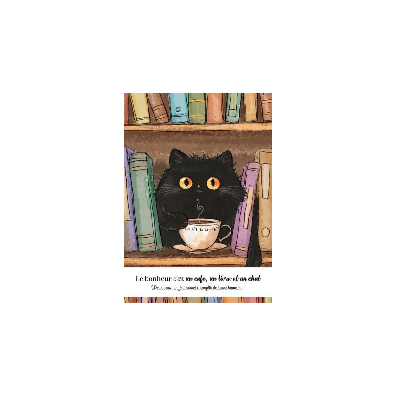 Carnet Le bonheur c'est un café, un livre et un chat...