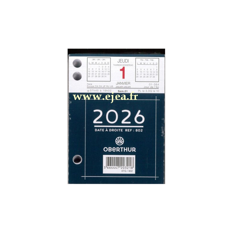 Recharge bloc bureau 2026 Date à droite avec...