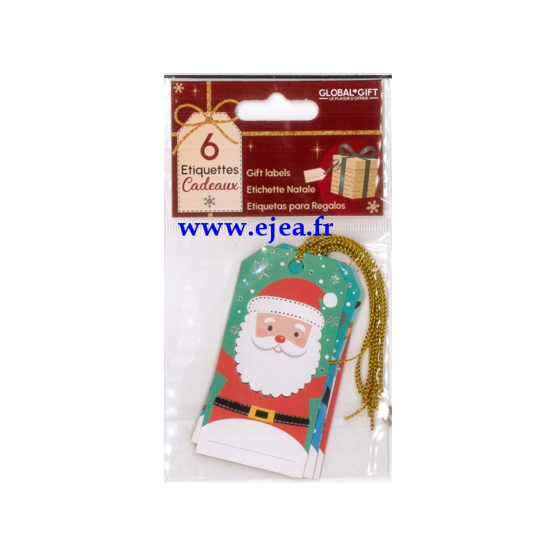 Set 6 étiquettes cadeaux forme père Noël et ses amis avec...