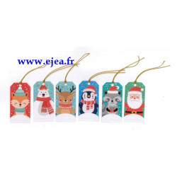Set 6 étiquettes cadeaux forme père Noël et ses amis