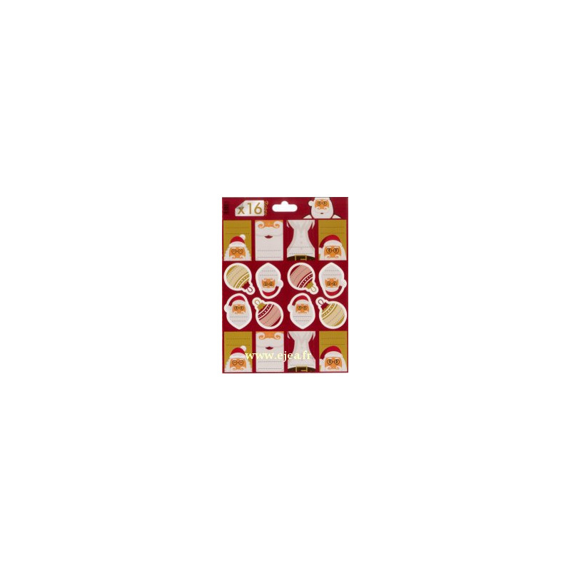 Planche de 16 étiquettes autocollantes Père Noël