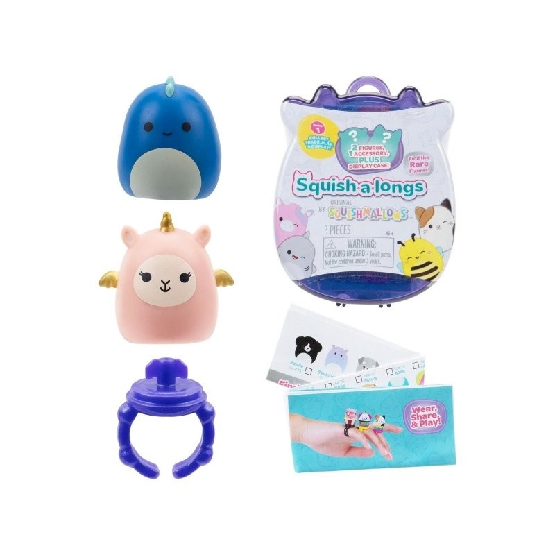 Boite colorée translucide contenant 2 mini Squishmallow et une bague support sur lequel tu peux accrocher l'un de tes Squishmallow. Plus de 58 mini Squish à collectionner. A partir de 6 ans; Dimensions de la boite : 6x7,5x4cm