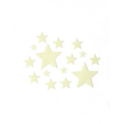 24 étoiles en plastique rigide de tailles différentes qui brillent dans le noir. Comprend également 25 autocollants double-face pour les fixer sur le support de votre choix. Dimensions des étoiles les plus grandes 9x8,5cm