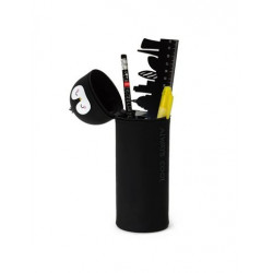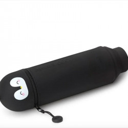 Entièrement en silicone, ouverture zippée, intérieur doublé. Longueur : 18cm, diamètre : 6cm. La trousse puisse se poser à la verticale et servir de pot à crayon !