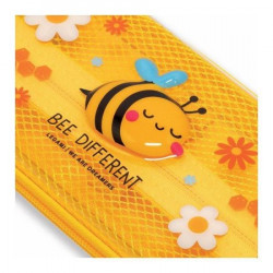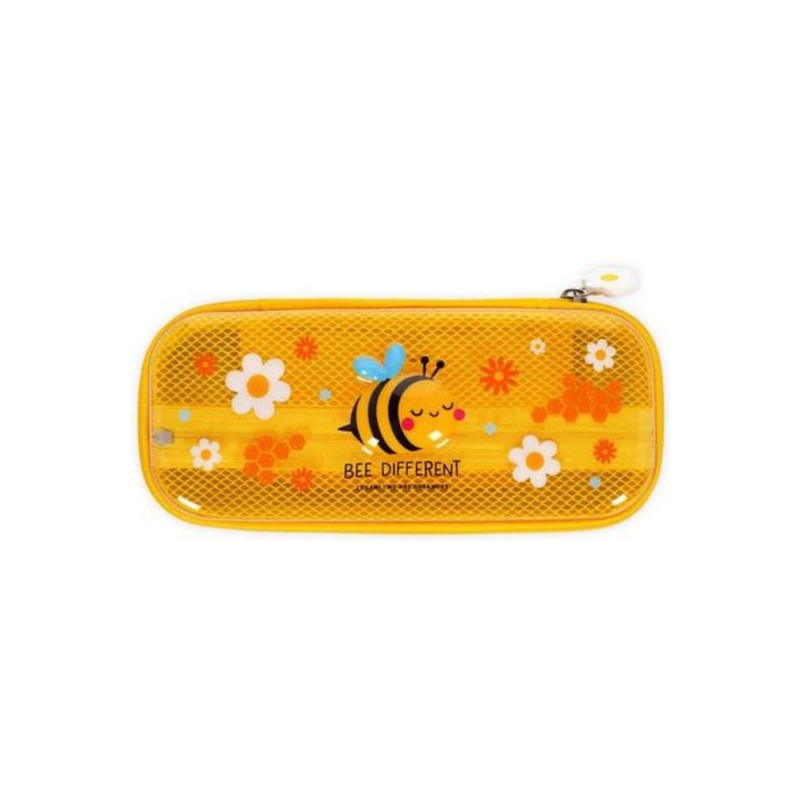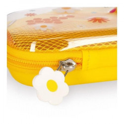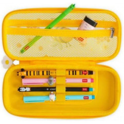 Trousse plumier coque rigide avec attaches pour stylos, rabat et compartiment filet avec fermeture éclair sur le couvercle supérieur. Face supérieure transparente avec motifs en reliefs. 23x11x3,5cm - Livrée vide