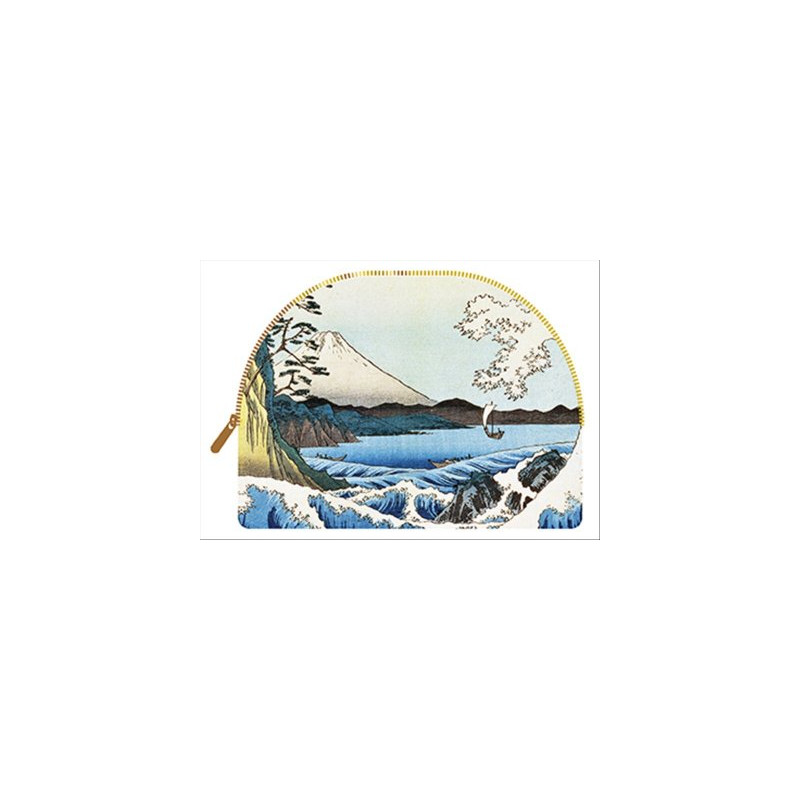 Pochette en demi-lune, format 19x15x7cm, imprimé identique recto et verso, fermeture zippée, doublure nylon. Reproduction d'après l'oeuvre de Hiroshige : La mer a Satta, 1797 - 1858. Collection Art & Kraft.