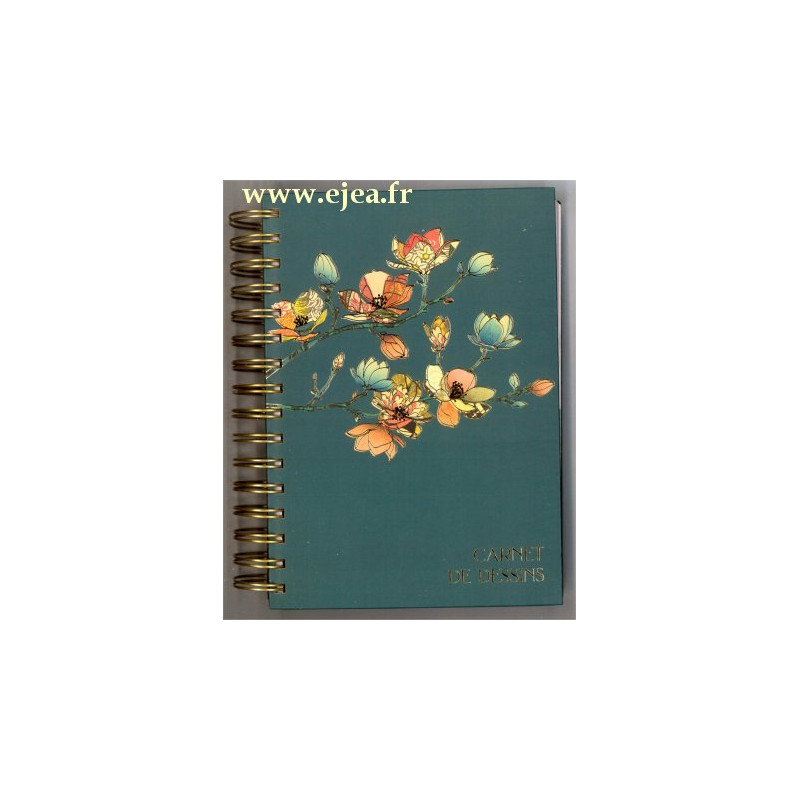 Carnet à spirales divisé en 2 parties : 60 pages papier 120g pour les esquisses au crayon, mine de plomb, stylo ou feutre et 60 pages de papier 200g pour les dessins au pastel, gouache, acrylique, aquarelle... Papier sans acide, grain fin, prédécoupé. Intercalaire entre les types de papier avec pochette pour y conserver quelques oeuvres. Couverture cartonnée rigide avec détails dorés à chaud, même motif au verso.