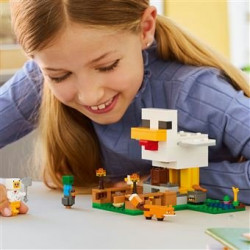 Prenez soin des poules et des plantations dans La ferme à poulet LEGO Minecraft. Ce set invite les passionnés du jeu vidéo à prendre soin d’une poule froide et d’un poussin avec une minifigurine de fan de poule, tout en surveillant un renard (amateur de poules froides) et un bébé zombie (adorant monter sur les poules). Le poulailler en forme de poule est doté d’ailes mobiles et d’un enclos à l’avant avec une clôture qui s’ouvre. La poule géante pond des œufs et distribue des graines avec sa bouche dans un récipient qui s’incline vers l’avant lorsque les poules ont faim. Le set inclut des torches, du foin, une cuisinière, 2 œufs, 2 lots de graines, une cuisse de poulet, une plume et une hache. Ce set figure dans l’appli LEGO Builder qui permet de zoomer, faire pivoter les modèles en 3D et suivre sa progression.