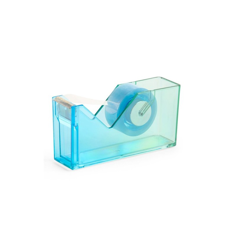 Dévidoir pour ruban adhésif (scotch). Entièrement transparent avec un joli dégradé de couleurs. Dimensions 6,5x6x14cm. Compatible avec des rouleaux de ruban de 19 mm x 33 m, NON inclus. Dimensions 12,6x6,2x3,6cm. Matière plexi résistante