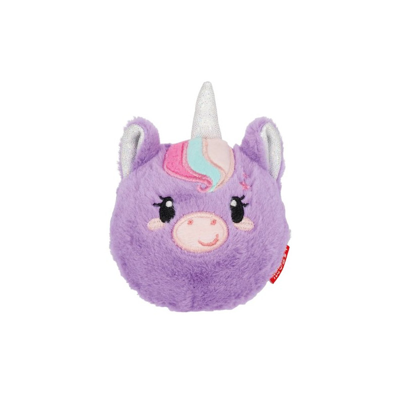 Recouverte de peluche avec détails brodés et corne en tissu pailleté. Environ 8cm de diamètre.