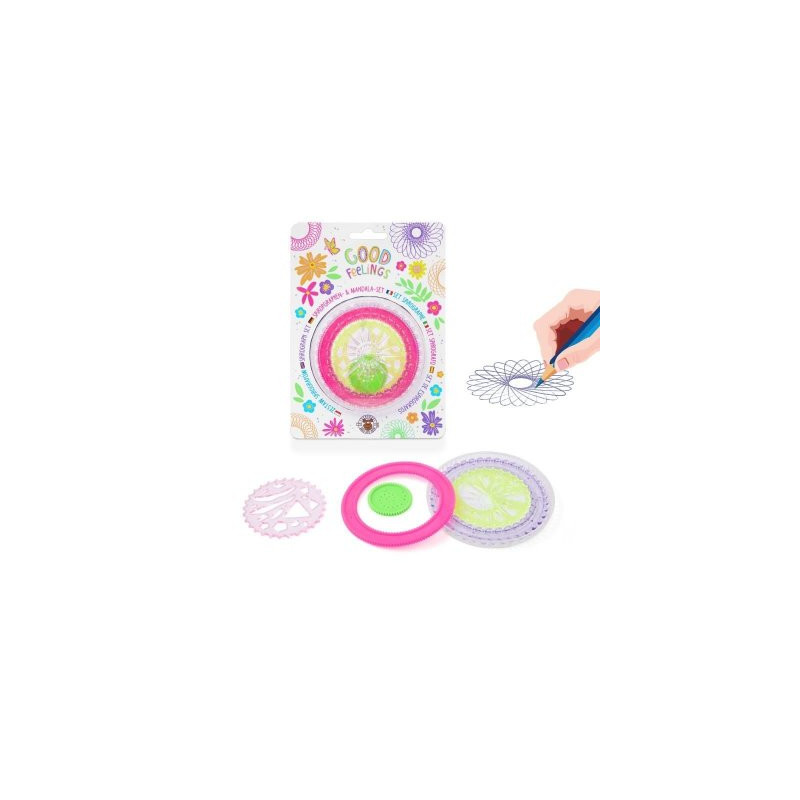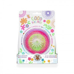 Set comprenant 2 cadres spirographes et 3 pochoirs pour réaliser de jolis mandalas personnalisés à colorier si on veut. Le tout dans un étui transparent. Diamètre 8,8cm x1,5cm