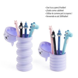 Une trousse en silicone 2 en 1. En position courte elle sert de pot à crayon posé sur ton bureau et en position longue elle devient une trousse classique… enfin pas si classique avec son look d'animal. Longueur 20cm, diamètre 7cm. Fermeture zippée sur la circonférence de la tête.