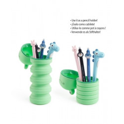Une trousse en silicone 2 en 1. En position courte elle sert de pot à crayon posé sur ton bureau et en position longue elle devient une trousse classique… enfin pas si classique avec son look d'animal. Longueur 20cm, diamètre 7cm. Fermeture zippée sur la circonférence de la tête.