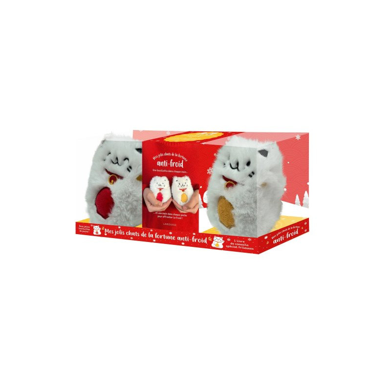 Ce coffret contient 2 bouillottes de poche en peluche toutes douces, une pour chaque main en forme de chat porte-bonheur "maneki neko" ! Et un livret de conseils spécial frileuses !